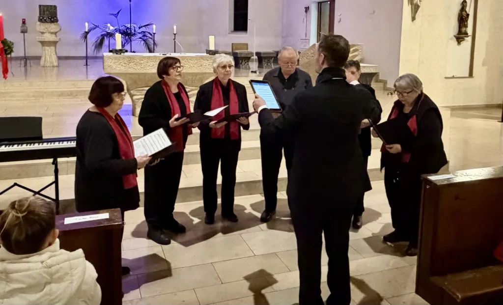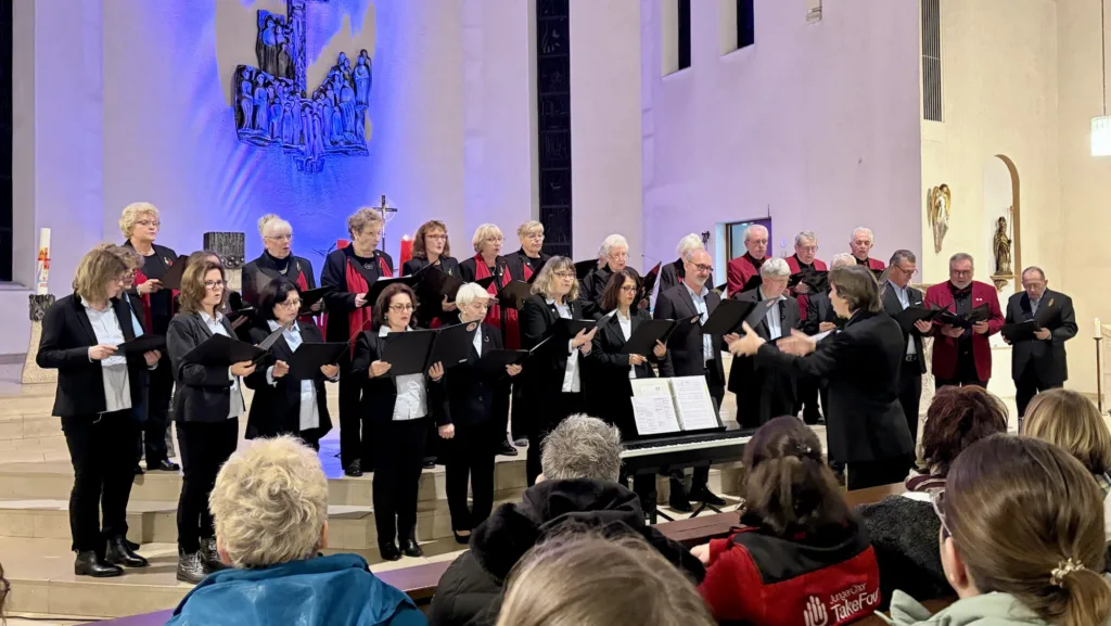 Zwischen den Chorbeiträgen lud das gemeinsame Singen des Gemeindelieds „Kündet allen in der Not“ dazu ein, den Raum selbst musikalisch zu füllen – ein wohltuendes Gefühl von Verbundenheit.